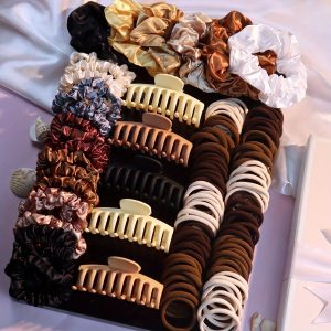 New Collection of Hair Accessories for Women: Seamless Ponytail Holders, Assorted Hair Clips, Scrunchies, and Hair Bands for Holiday Parties