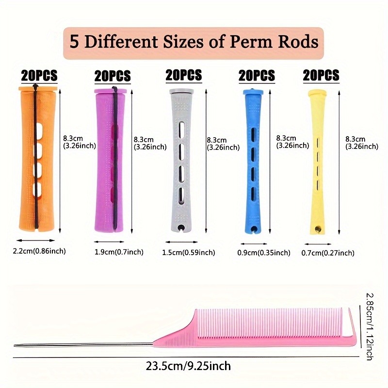 100pcs Natural Hair Curling Iron Set 5 Sizes Cold Wave Iron Women’S Curling Iron Medium And Long Curling Iron Styling DIY Hairdressing Tools (20 Orange + 20 Purple + 20 Gray + 20 Blue + 20 Yellow)