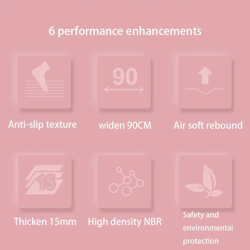 · Anti-slip texture · Widened 90CM · Air soft rebound · Thickened 15mm · High density NBR · Safety and environmental protection