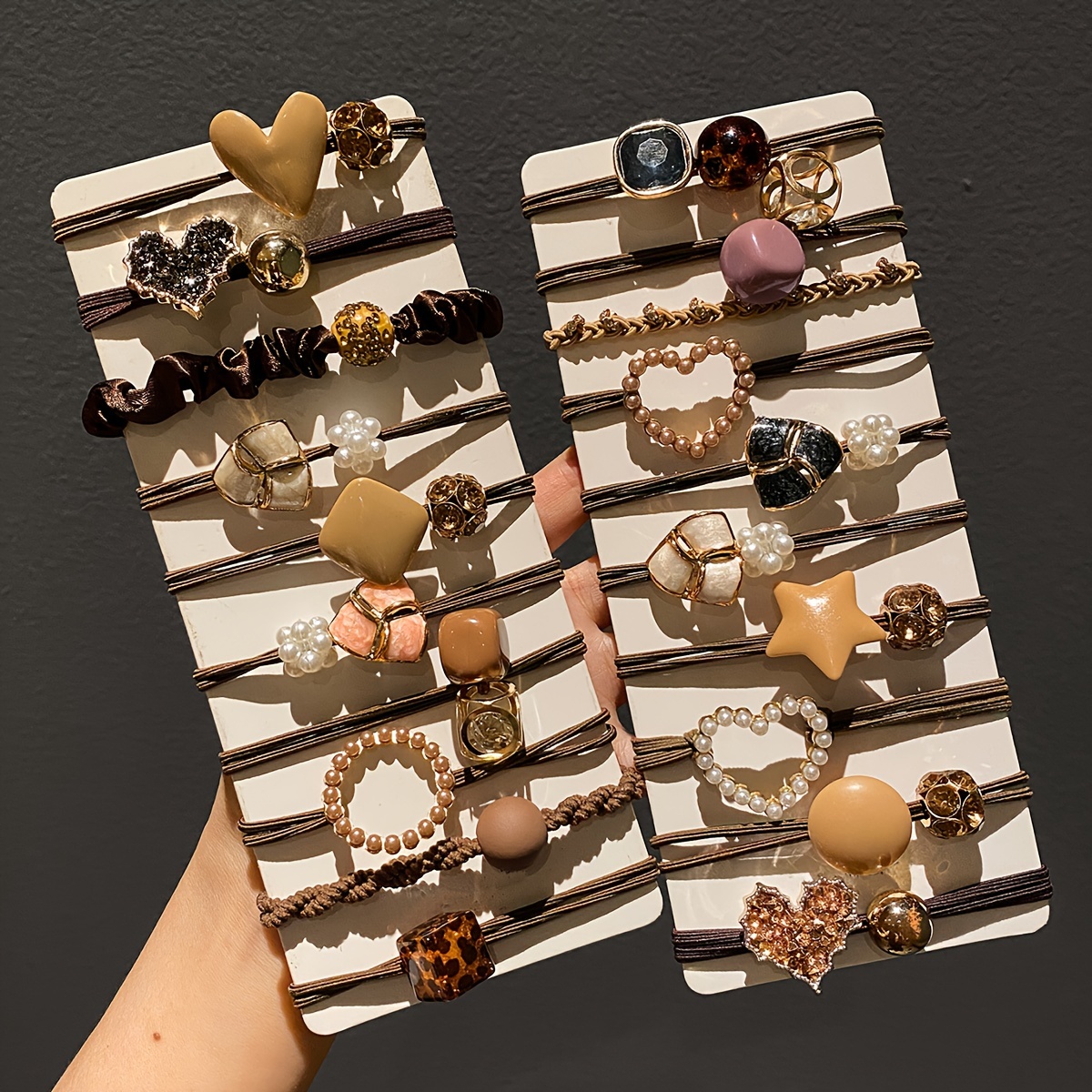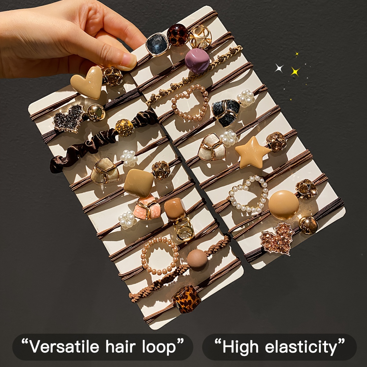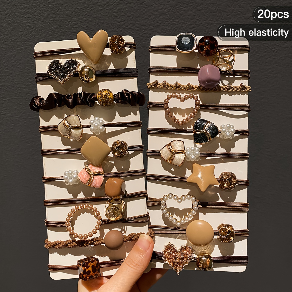 20PCS Elegant Pearl and Crystal Hair Ties – Retro and Elegant Design, Suitable for Ages 14 and Above