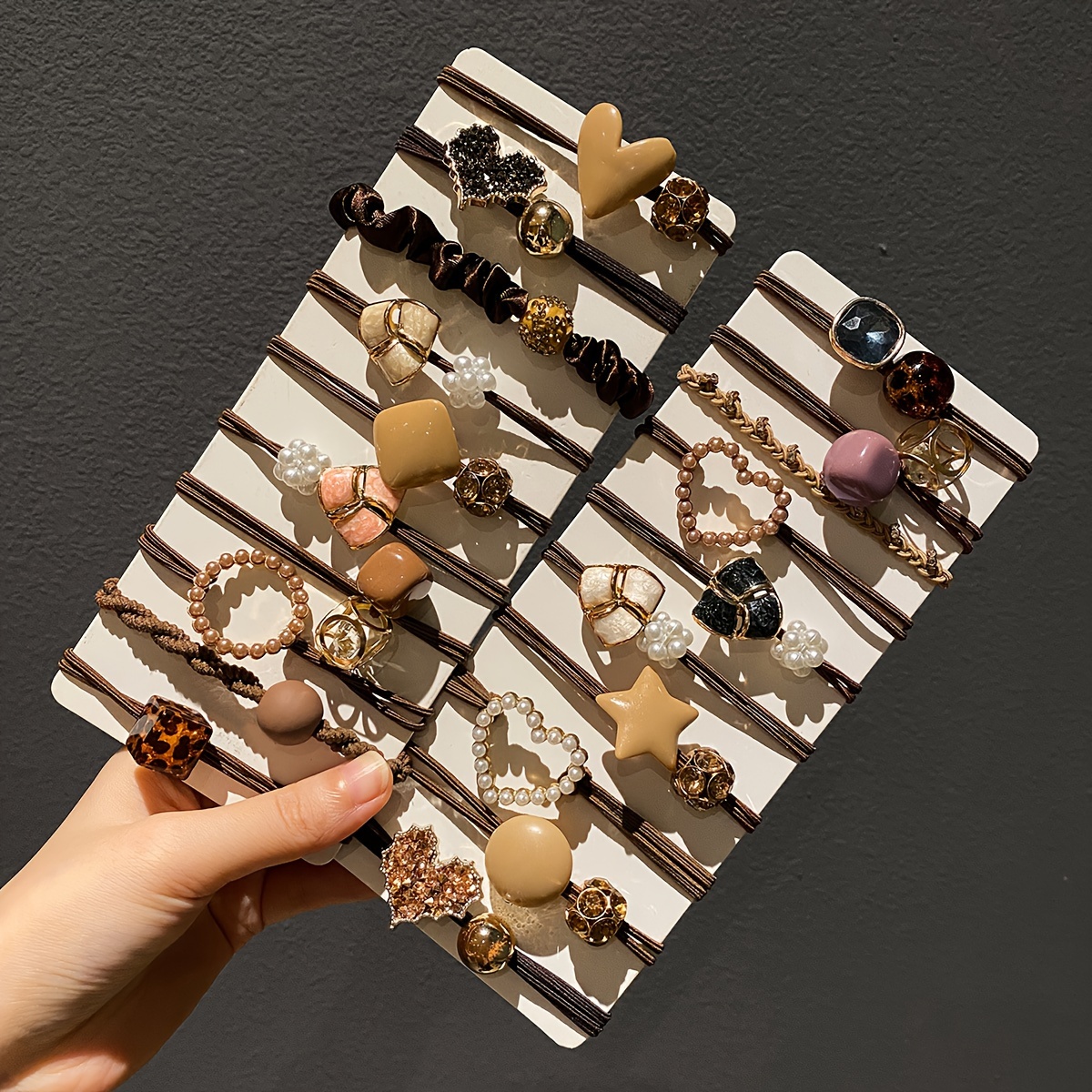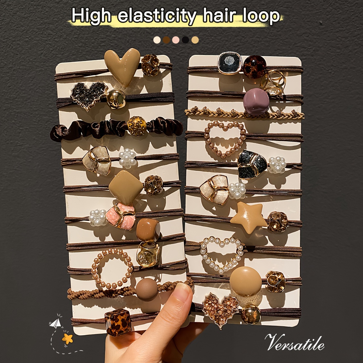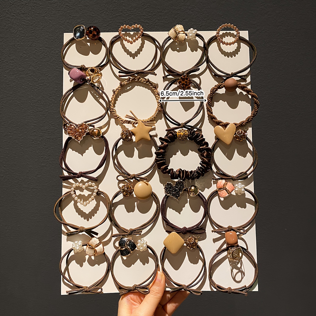 20PCS Elegant Pearl and Crystal Hair Ties – Retro and Elegant Design, Suitable for Ages 14 and Above