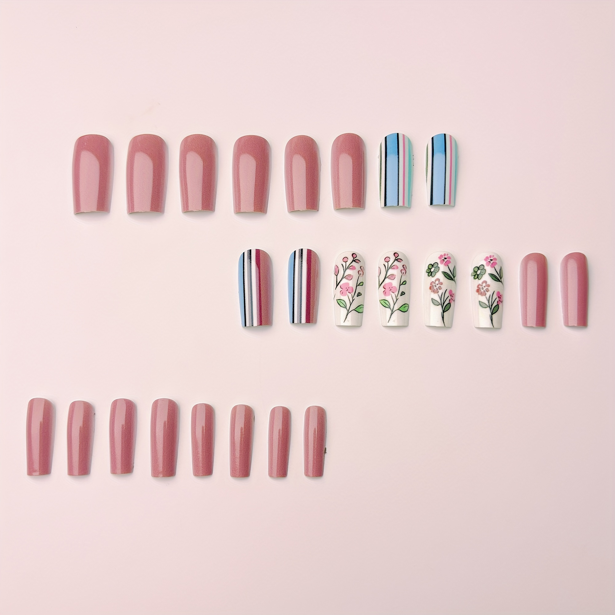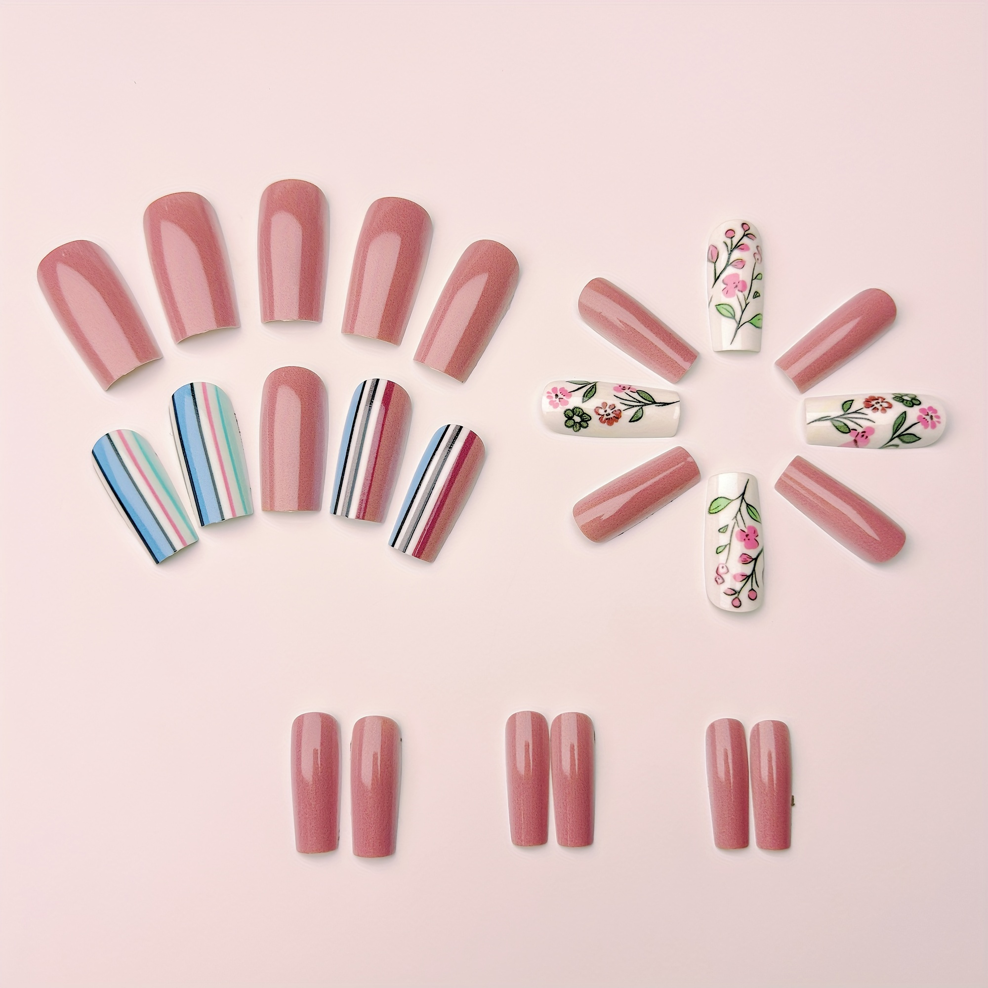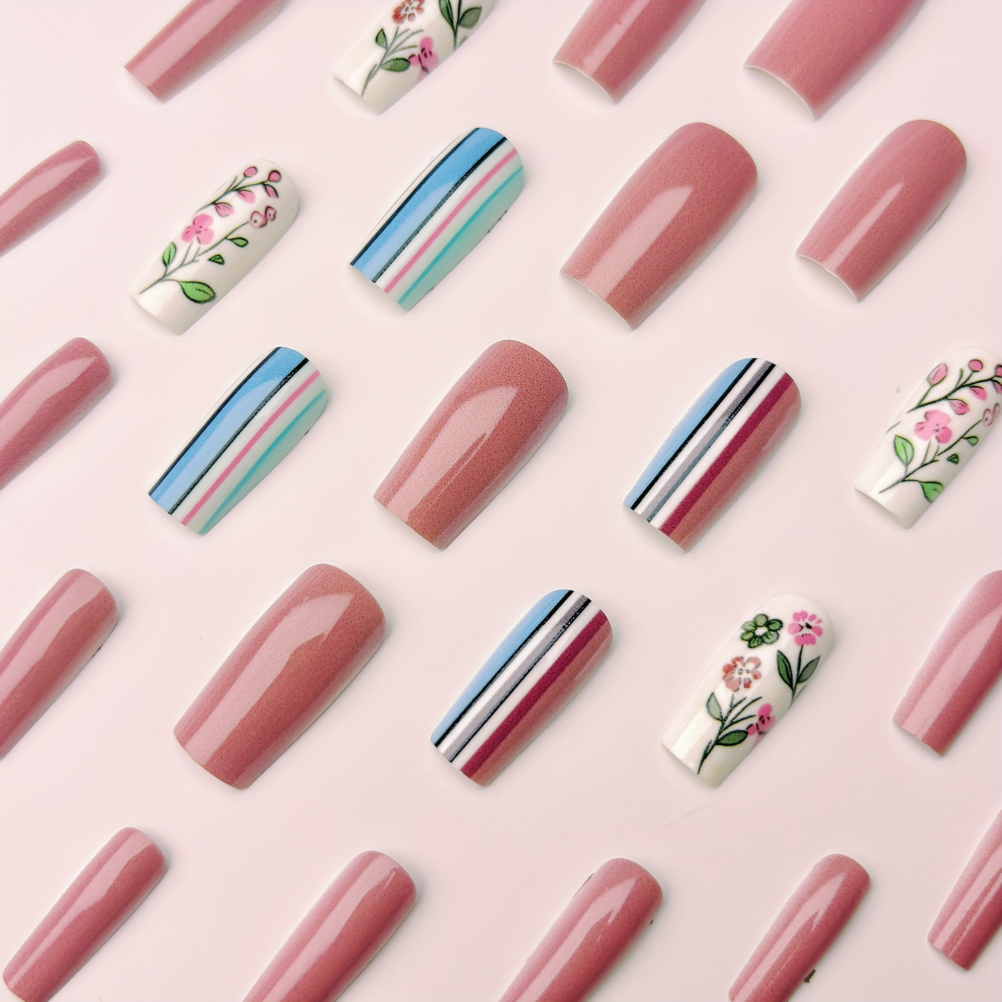 You're viewing: 24pcs Elegant Floral & Stripe Press-On Nail Set in Pink, Beige & Gray – Medium Almond Shape with Glossy Finish, Reusable False Nails for Women, Nail Accessories5,00 £