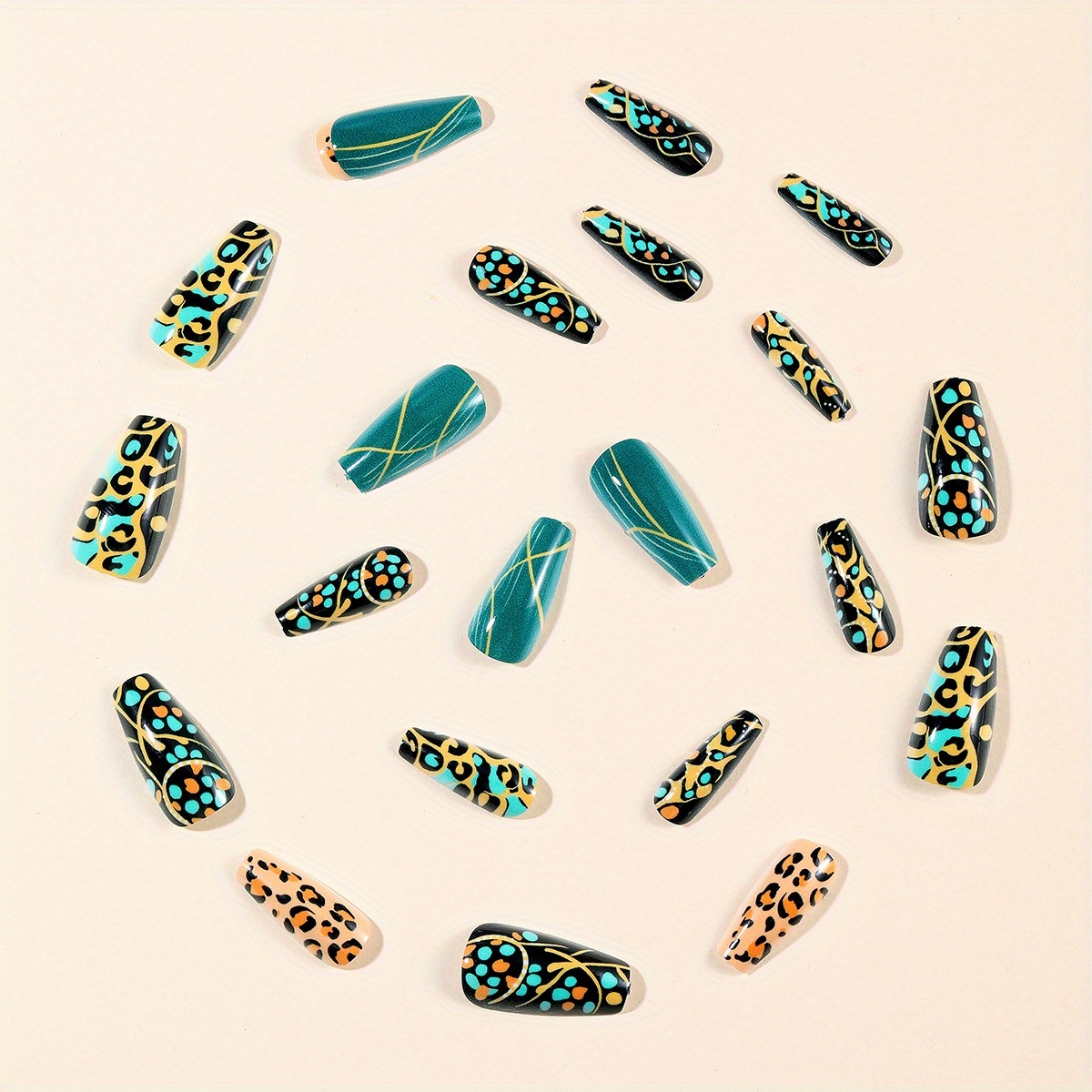 You're viewing: 24pcs Medium-Long Ballet Shaped Press-On Nails – Green Leopard Print & Teal Ombre with Golden Accents, Removable Full Coverage Acrylic Nail Art for Stylish Manicures, Nail Art Supplies, Nail Salons, Salon Quality Nails, Durable Nail Extensions220,00 £