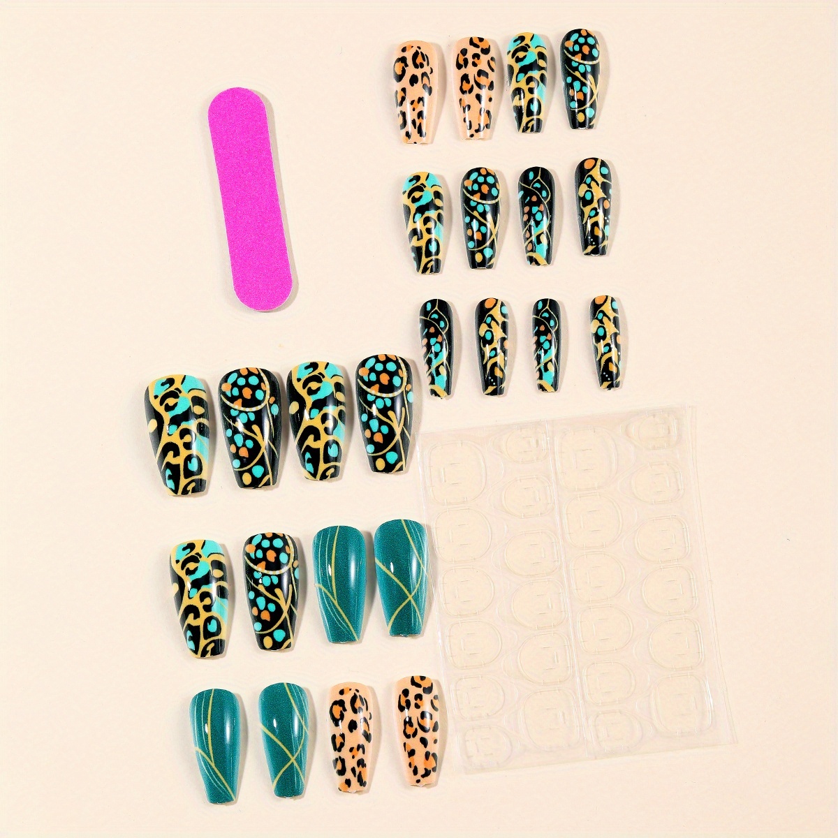 Be the first to review “24pcs Medium-Long Ballet Shaped Press-On Nails – Green Leopard Print & Teal Ombre with Golden Accents, Removable Full Coverage Acrylic Nail Art for Stylish Manicures, Nail Art Supplies, Nail Salons, Salon Quality Nails, Durable Nail Extensions” Cancel reply