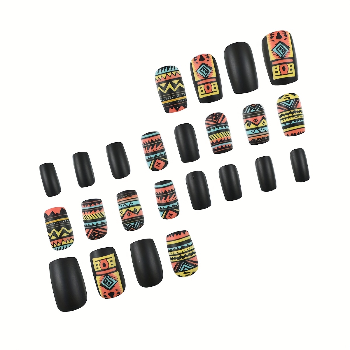 24pcs of Medium-Long European and American Style Geometric Pattern Nail Stickers – Fashionable Matte Colorful Nail Decorations, Suitable for Parties and Daily Wear