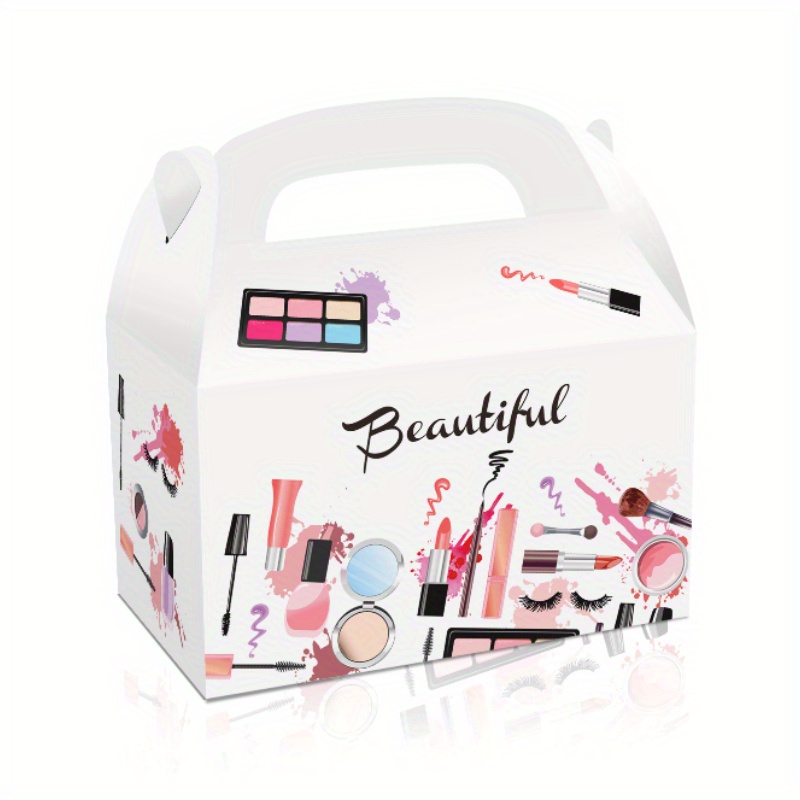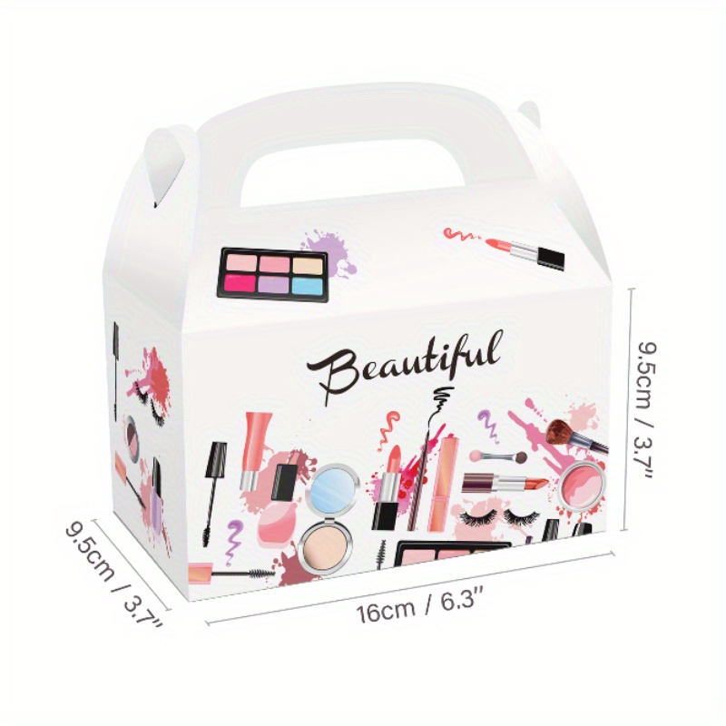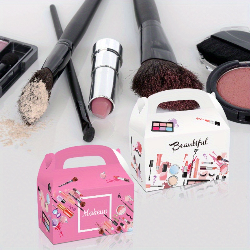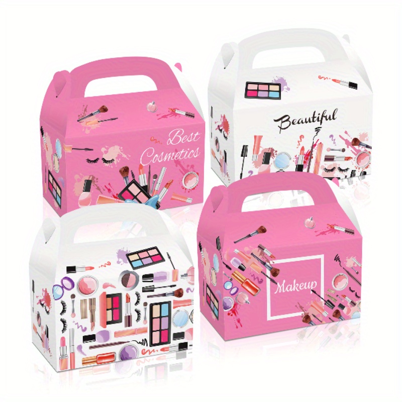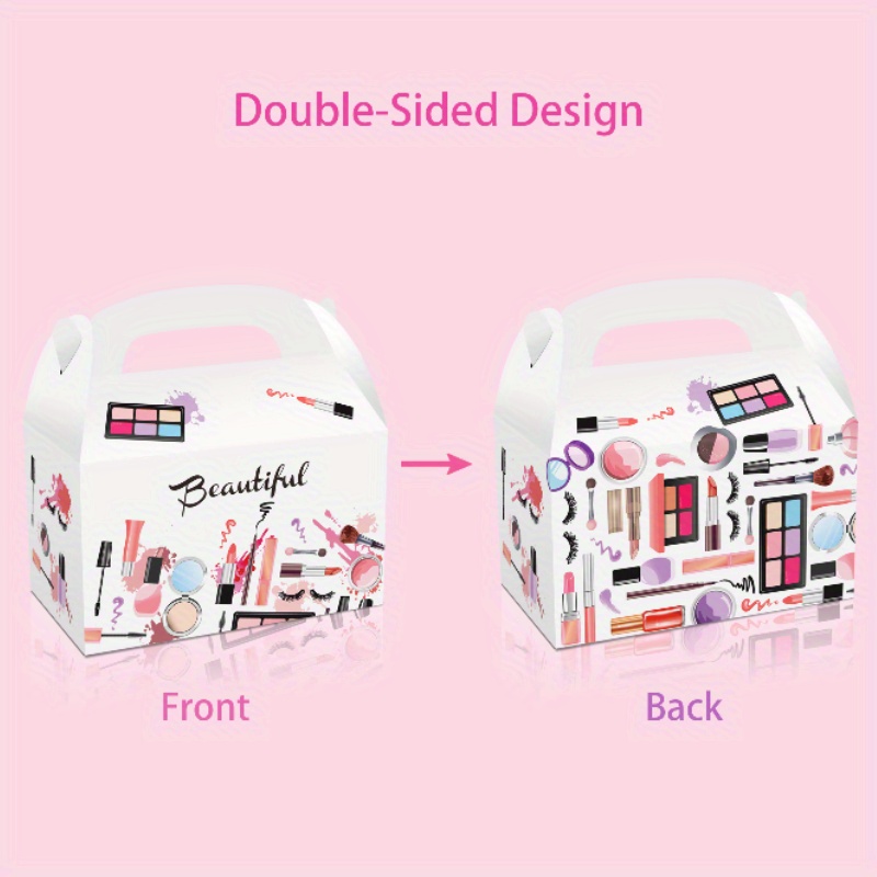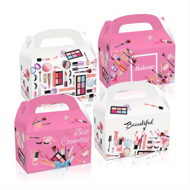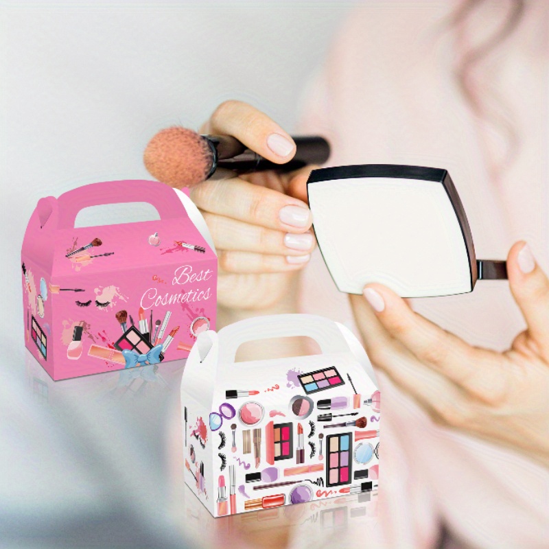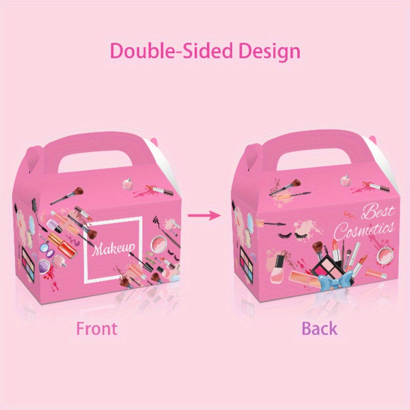 24pcs Pink/White/Cosmetics Theme Party Gift Box Set, Perfect for Boys and Girls Birthday Celebrations, with Paper Lid and Handle, Designed for Pink/White/Cosmetics Theme Parties
