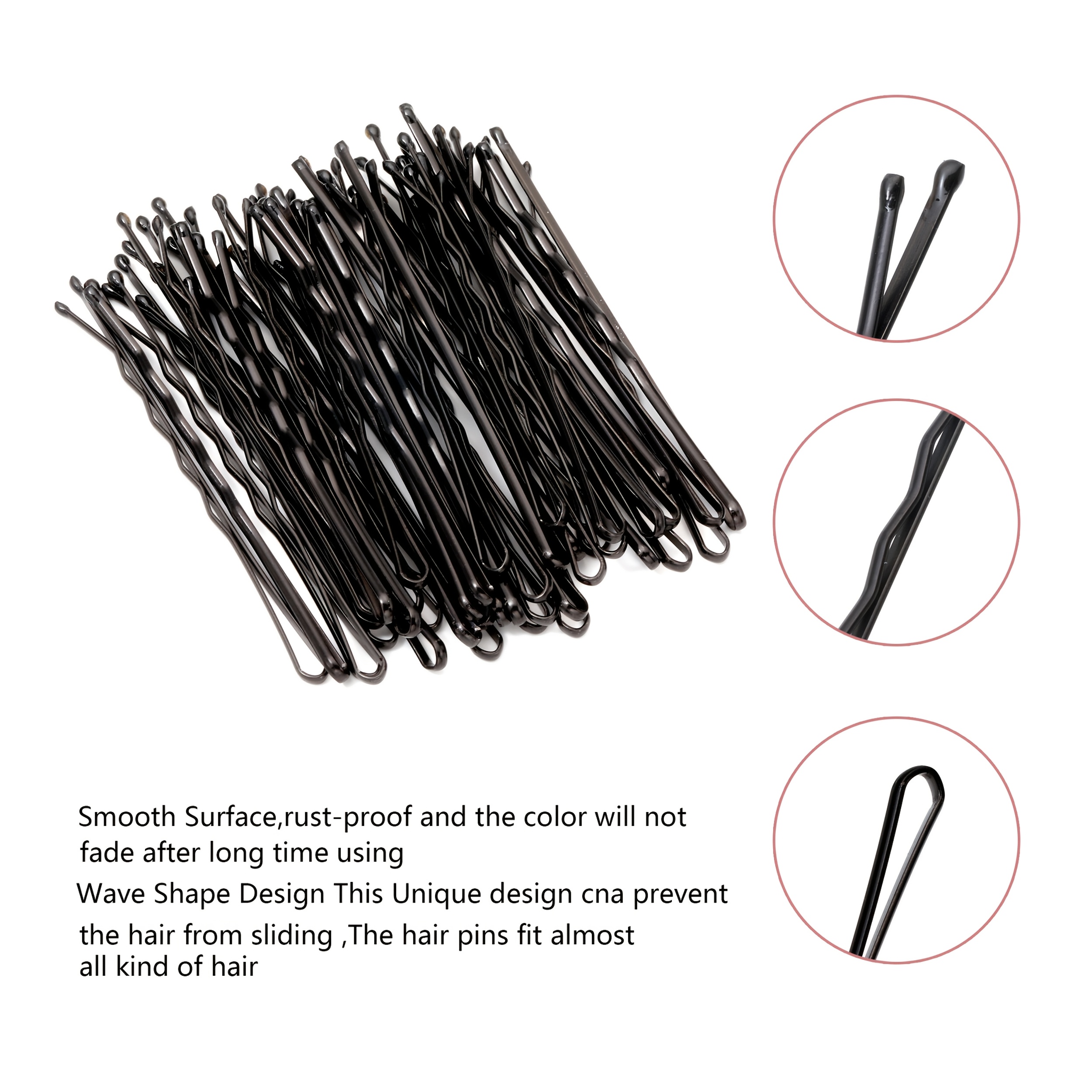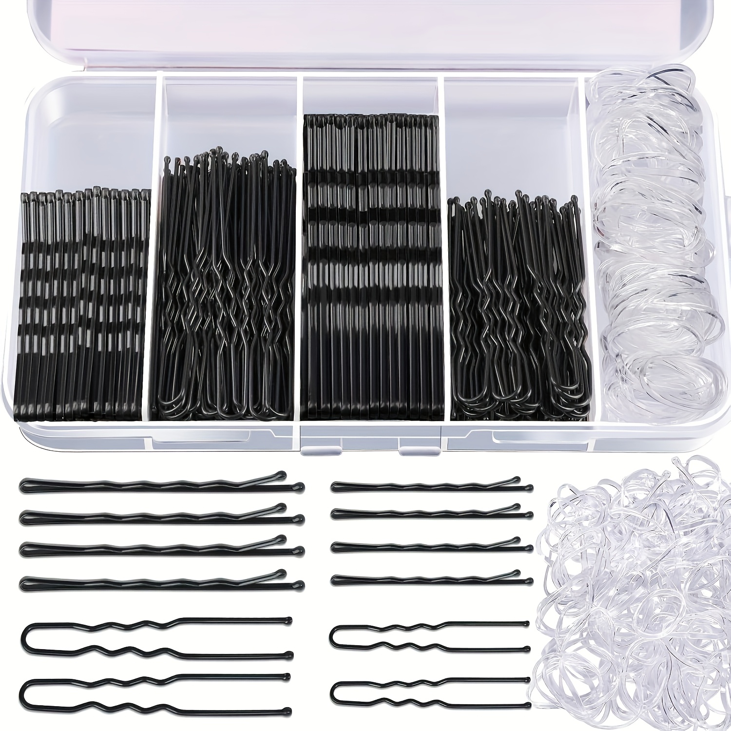 [300pcs Black Hair Pins] 300pcs Hair Pins Bobby Pins Black, 100 Black Bobby Pins 100 Hair Pins for Women and 100 Clear Hair Bands Kit, Black Hair Pins for Buns 2″ 2.36″ and Black Bobby Pins 2″ 2.75