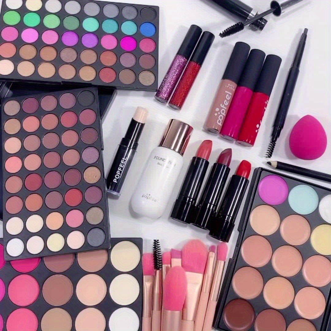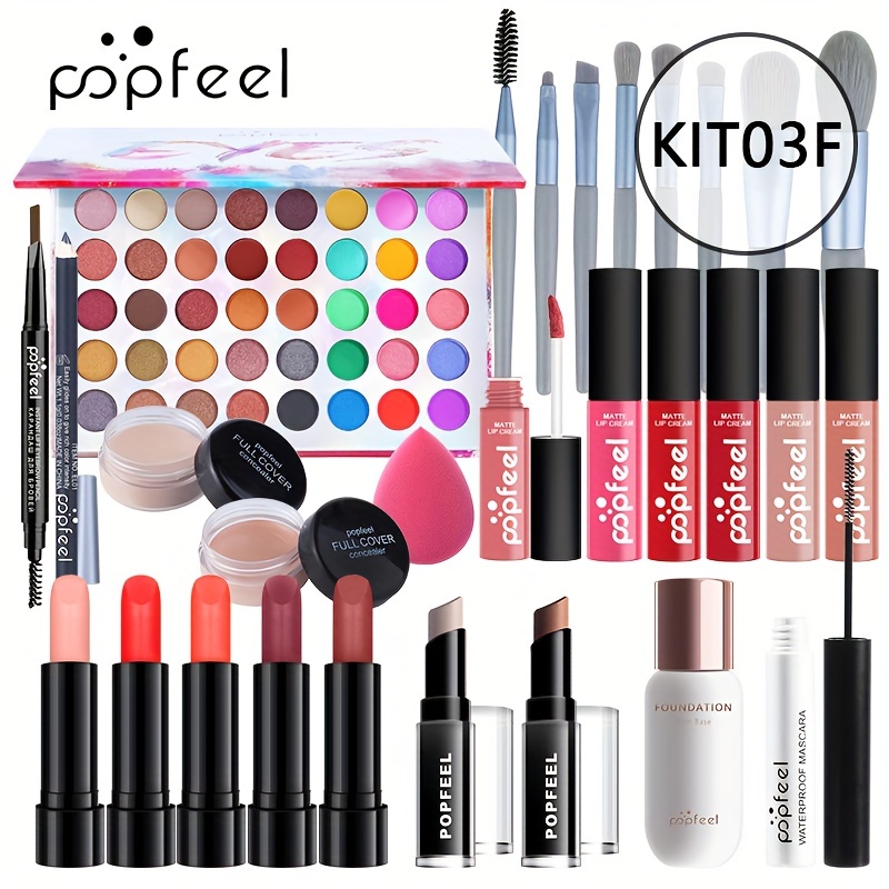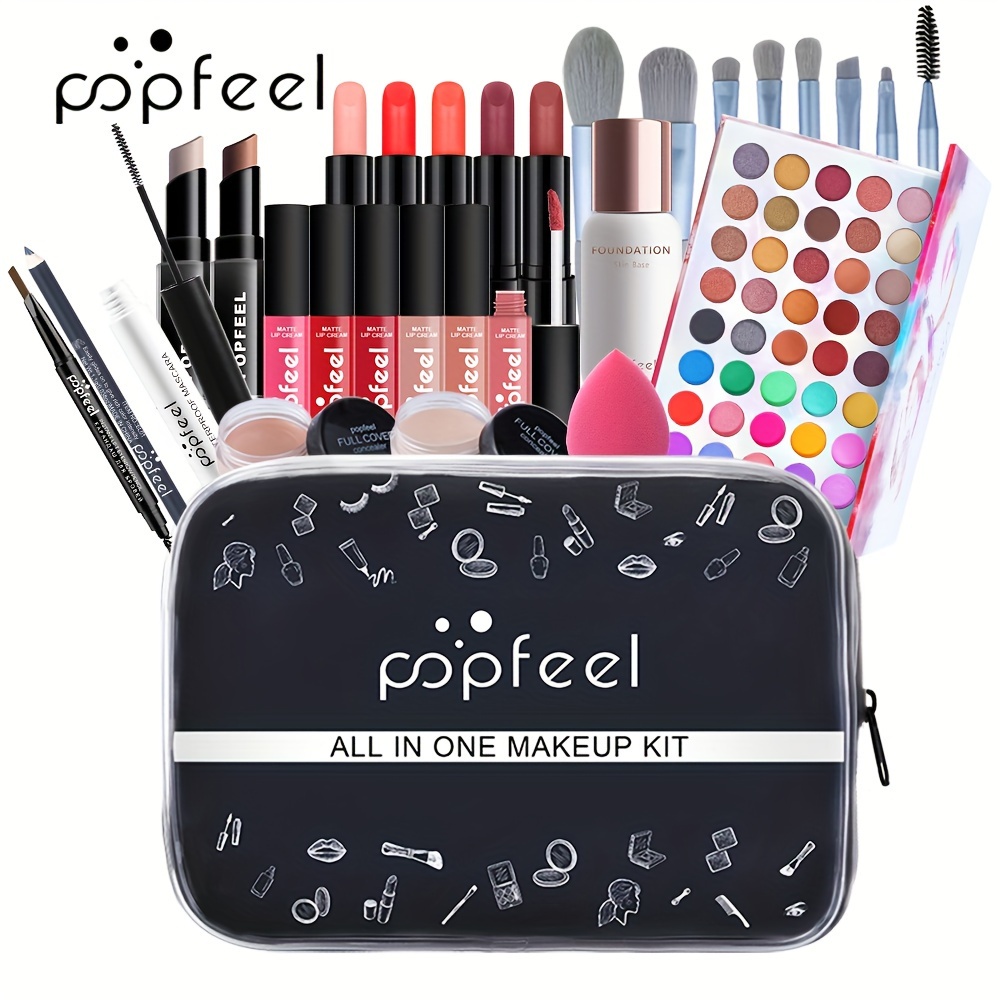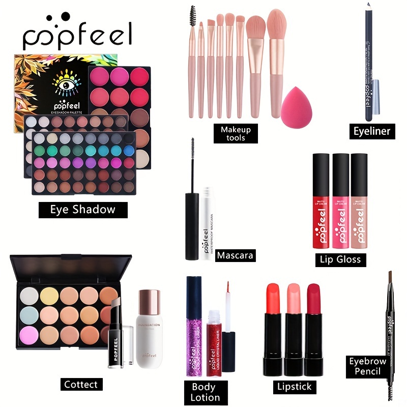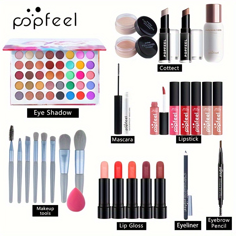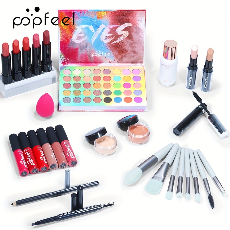 POPFEEL Beginner’S Face Makeup Kit, Non-Dyeing Concealer, Eye Liner, Eyebrow Pencil, Lipstick, Eyeshadow Palette, Pink, Purple, Red, Yellow for Face